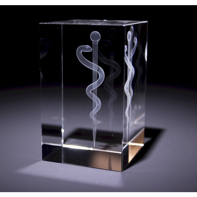 Bent u op zoek naar een leuk cadeau voor een dokter of een geneeskunde student ? Dan hoeft u niet verder te zoeken! In dit prachtige glazen blok is door middel van lasertechnologie een uiterst gedetailleerde esculaap gemaakt. Dit blok is gemaakt van hoogwaardig optisch glas waardoor de esculaap op een bijzondere manier getoond wordt.