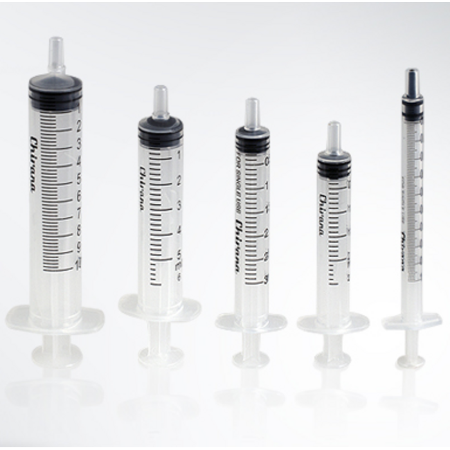 Injectiespuiten 3-delig, steriel verpakt zonder naald, met luer aansluiting.