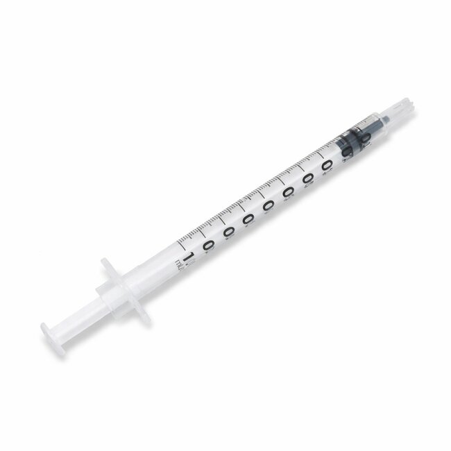 Injectiespuiten 3-delig, steriel verpakt zonder naald, met luer aansluiting.