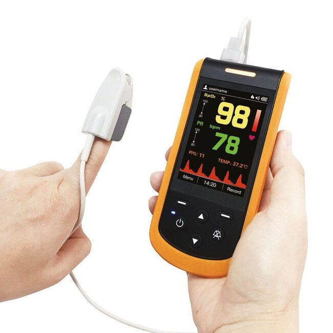 Deze draagbare pulsoximeter wordt gebruikt om de hartslag en de functionele zuurstofsaturatie (SpO2) te meten en registreren. Hij is geschikt voor het meten van SpO2 en hartslag bij volwassenen, kinderen en pasgeborenen in klinische omgevingen en thuis.