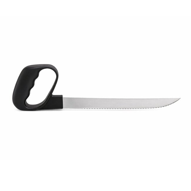 Dit ergonomische broodmes is ontworpen om snijden moeiteloos en comfortabel te maken. Dankzij de anatomisch gevormde ronde greep is er slechts minimale krachtinspanning nodig tijdens gebruik. Het handvat ondersteunt hand en pols in een natuurlijke, stabiele positie, waardoor overbelasting wordt voorkomen en de kans op pijn of irritaties wordt verminderd.