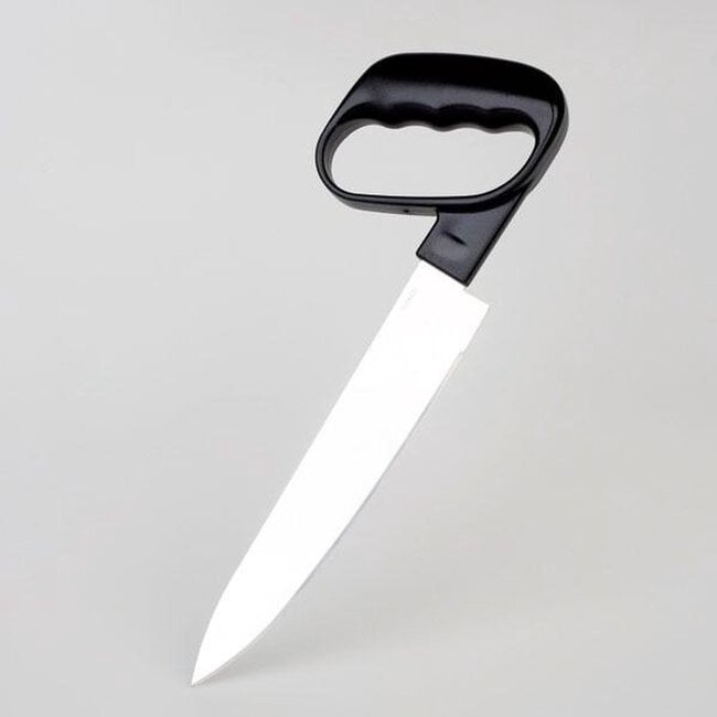 Het gebogen handvat maakt dit mes bijzonder geschikt voor mensen met verminderde spiercontrole, reuma of beperkte mobiliteit in handen en armen. Het biedt extra stabiliteit en controle, zodat snijden weer eenvoudig en veilig wordt.