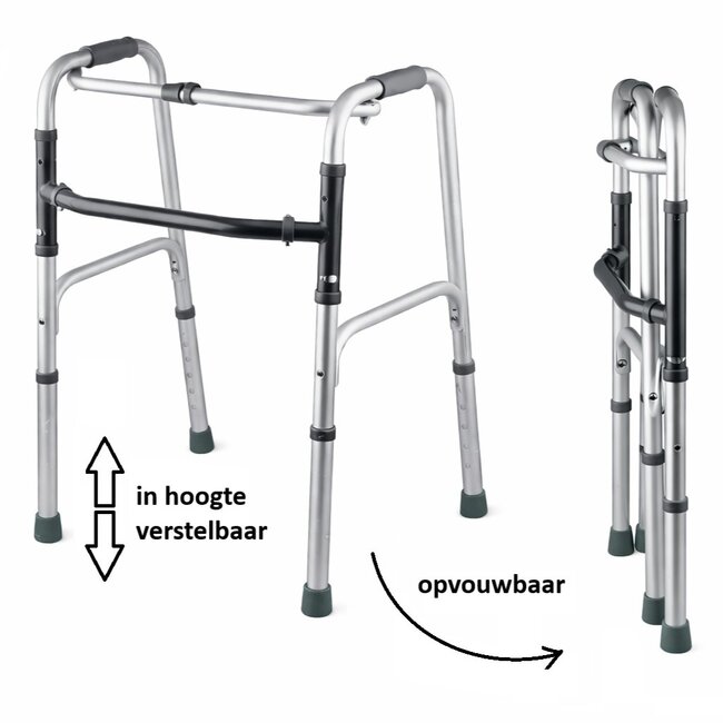 Aluminium opvouwbaar looprek. Het looprek is in hoogte verstelbaar